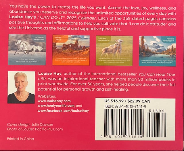 Welcome to the I Can Do It 2025 Calendar - your daily source of inspiration and motivation! This calendar features 365 affirmations by the renowned Louise Hay, designed to help you stay positive and focused every day of the year. Embrace the power of positive thinking and start your day with confidence and purpose.